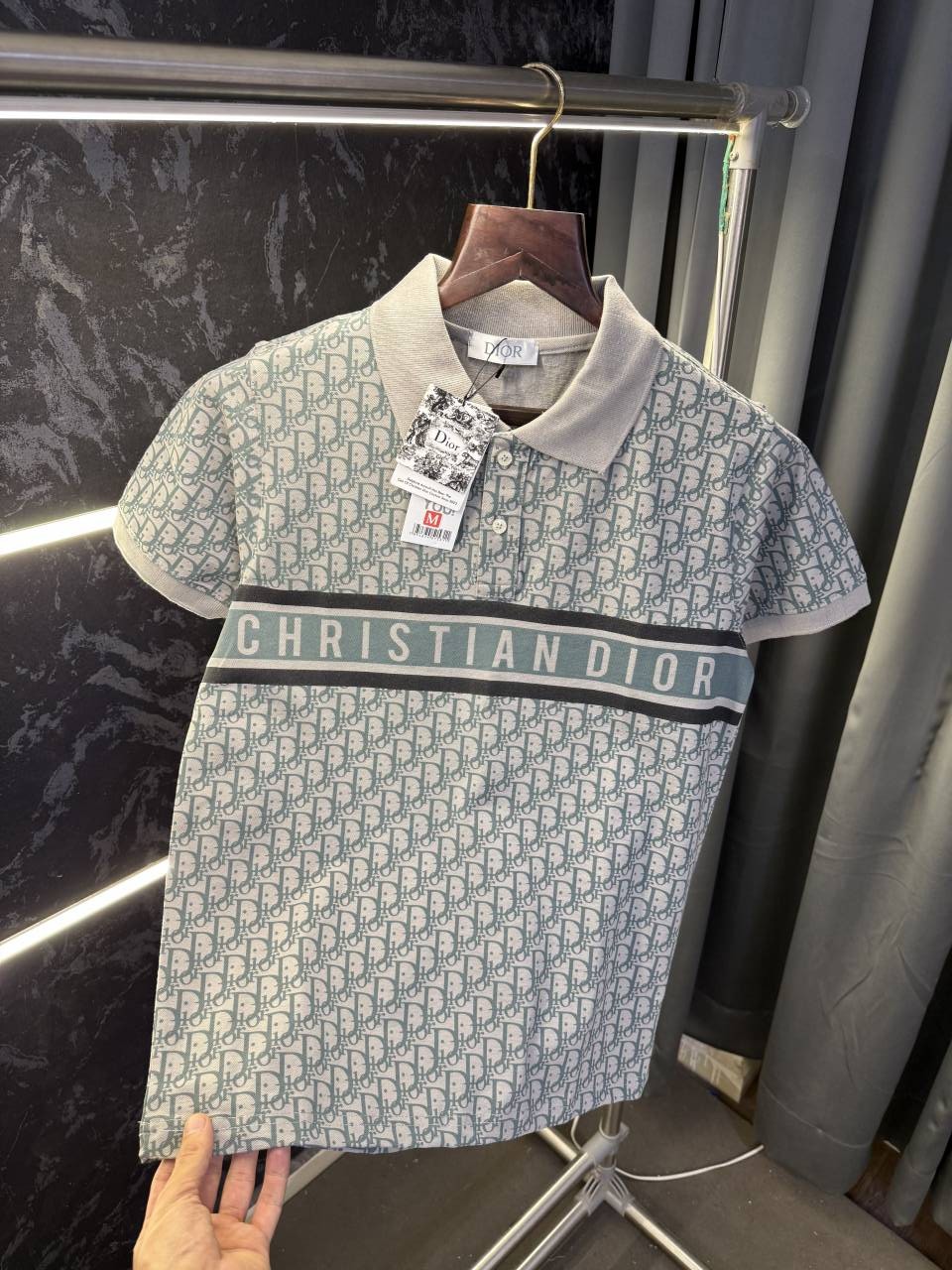Christian Dio r Monogram Imported Polo Tshirt (Grey)