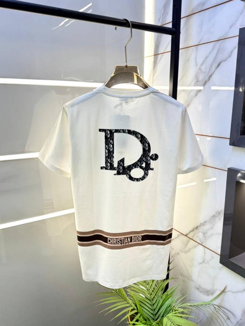 Christian Dio r White Back Print Premium Round Neck T-shirt With Brand Carry Bag F2337-WH