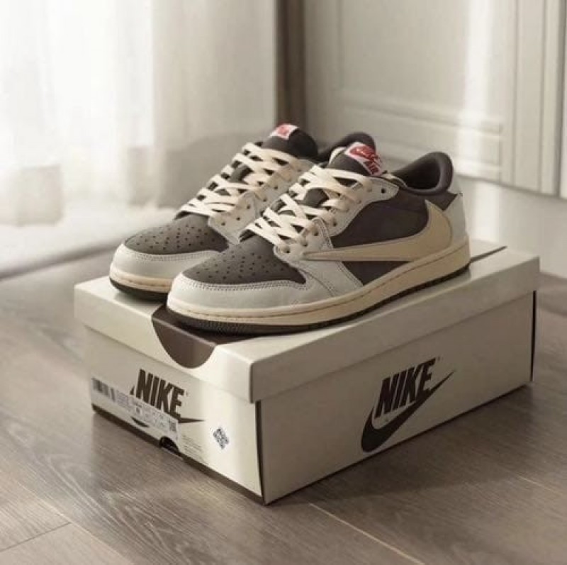 Nikee Air Jordan 1 Low X Travis Scott Revers Mocha Semi UA With Shoe Kitchen